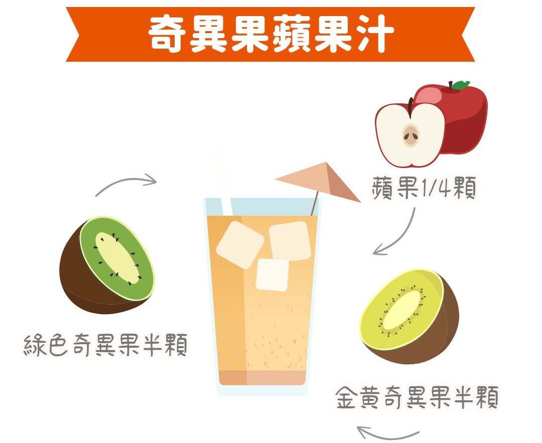 材料:綠色奇異果半顆、金黃奇異果半顆、蘋果1/4顆