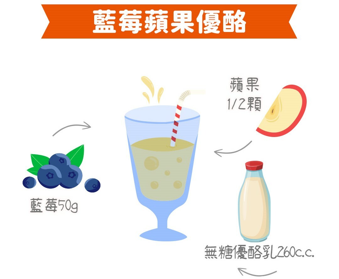 材料:藍莓50g、蘋果1/2顆、無糖優酪乳260c.c.