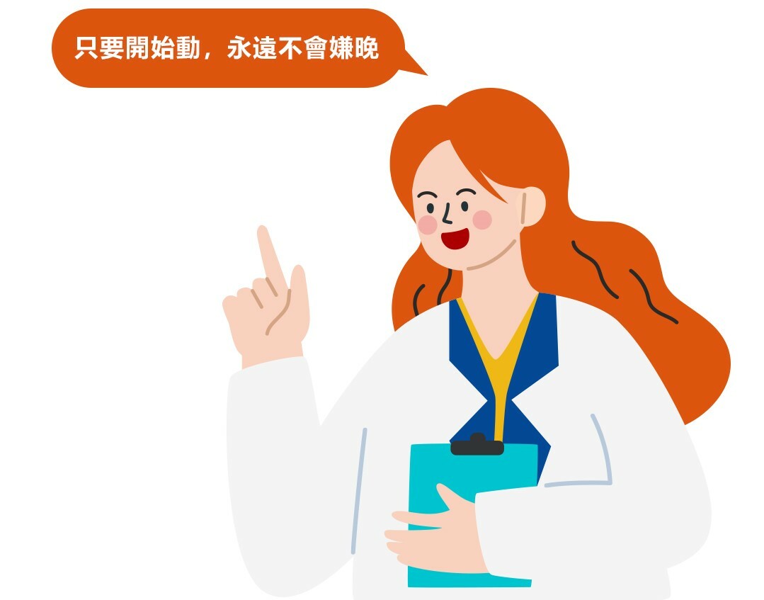運動量最好要維持,不習慣運動的人可從「日行萬步」開始或從日常做起:養成三層樓內爬樓梯的習慣、一邊看電視一邊做健身操,一起擺脫久坐!