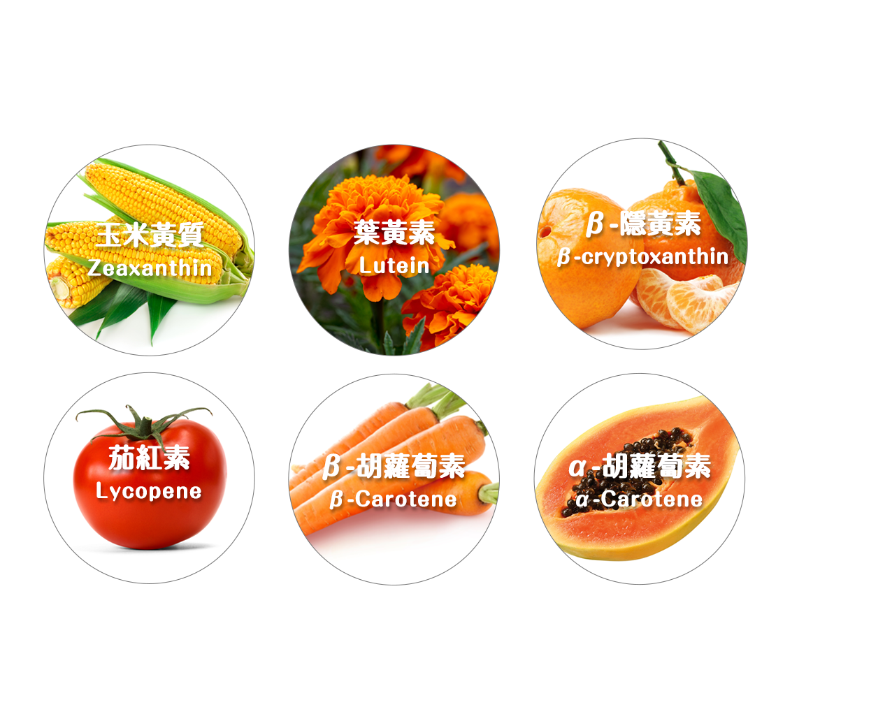 葉黃素是一種類胡蘿蔔素,存在於蔬菜、水果之中。通常葉黃素與玉米黃素會一起添加,可達到協同的效果。